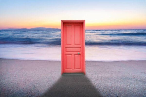 In her dream Irene walked alone in the dark. Alone. Without light. She was not afraid. She sensed that her path lay between water and sand. She noted that her way was clear. Her steps swung forward without encumbrance, or stumbling blocks and always onto solid surface. She walked. In time a faint pink glow appeared on her left. She understood that she walked out of north and into south. The glow gradually expanded into yellow and gold. Then into daylight. Her way was revealed. Hers was a narrow path between a dark water, moiling and deep on her left and and an endless desert empty of water on her right. She stopped walking and stood turned toward water. As is sometimes the way of dreams, she both stood and watched herself stand. A shadow moved over her. She sensed the shadow before she saw the door. A standing door where none had been before. Drawn, she walked forward to the door. The knob vibrated beneath her hand when she turned it. As she pushed she heard Aunt Irene’s voice through the opening door. “Enter. You are safe.”